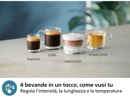 - 4 Drinks at Your Fingertips: From classic espresso to creamy cappuccinos, enjoy your favorites with perfect crema and temperature.