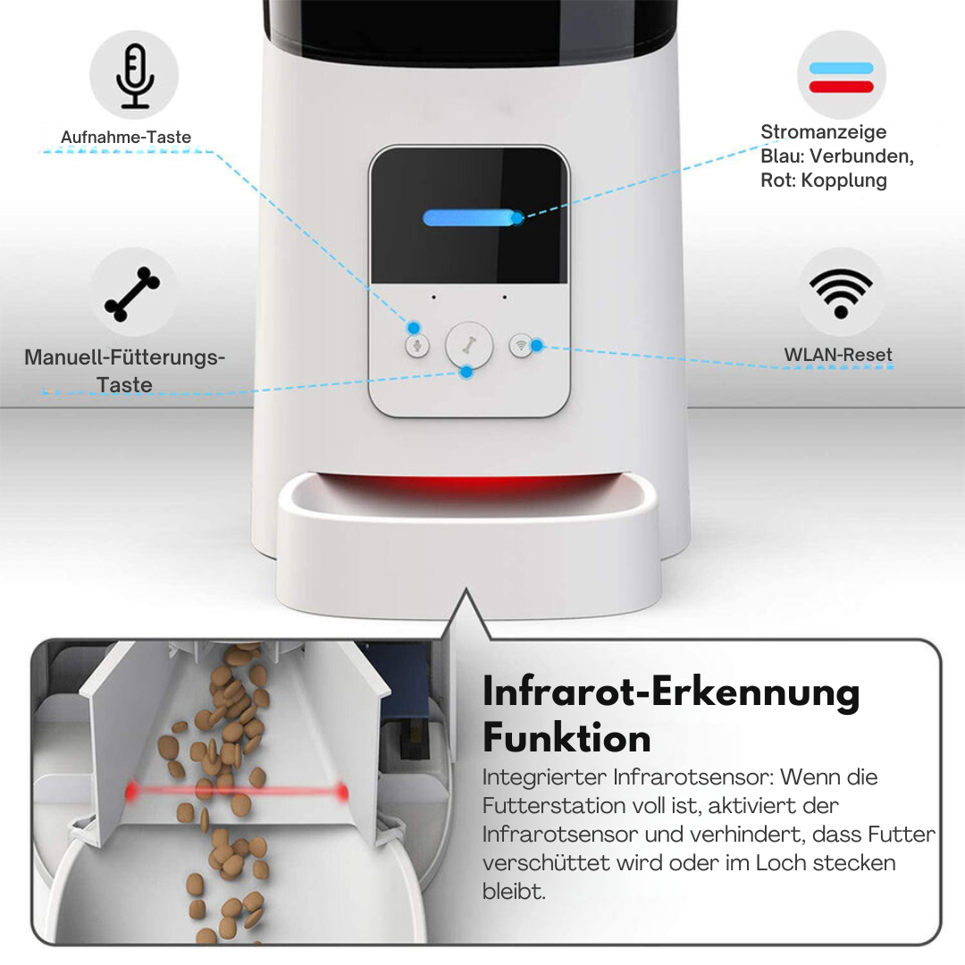 🌐 Infrarooddetectie: Voorkomt dat voer overloopt of vast komt te zitten – voor een schone en stressvrije voeding.